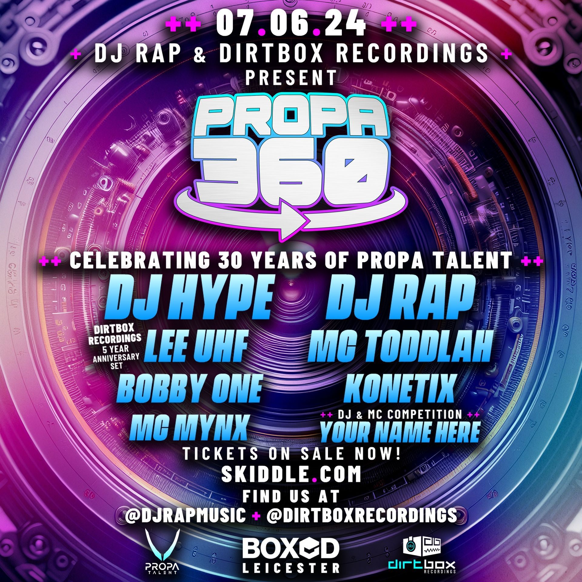 Very excited to announce on June 7th I will be hosting an event with my brand Dirtbox Recordings alongside the legendary DJ RAP- This will be an exclusive 360 event featuring the great and powerful Dj Hype, Konetix, Toddlah + More. Tickets on skiddle now