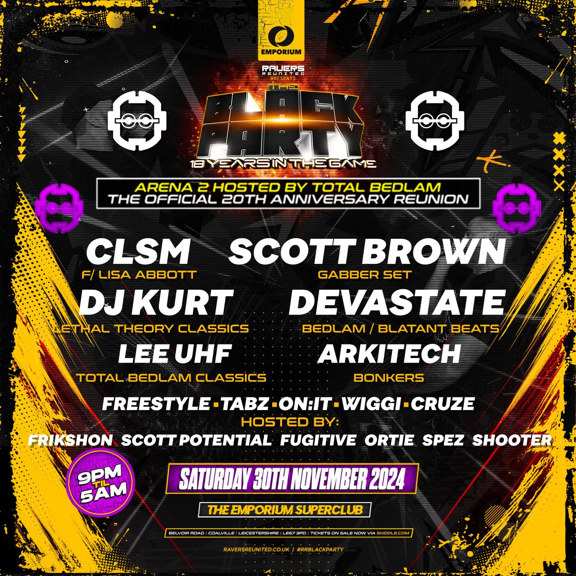 This weekend see's the return of my classic Brand Total Bedlam- Following this years 20th Anniversary and bringing back all the music to Spotify we are hosting room 2 at the legendary Ravers Reunited at The Emporium, Coalville, Leicestershire. 30th November