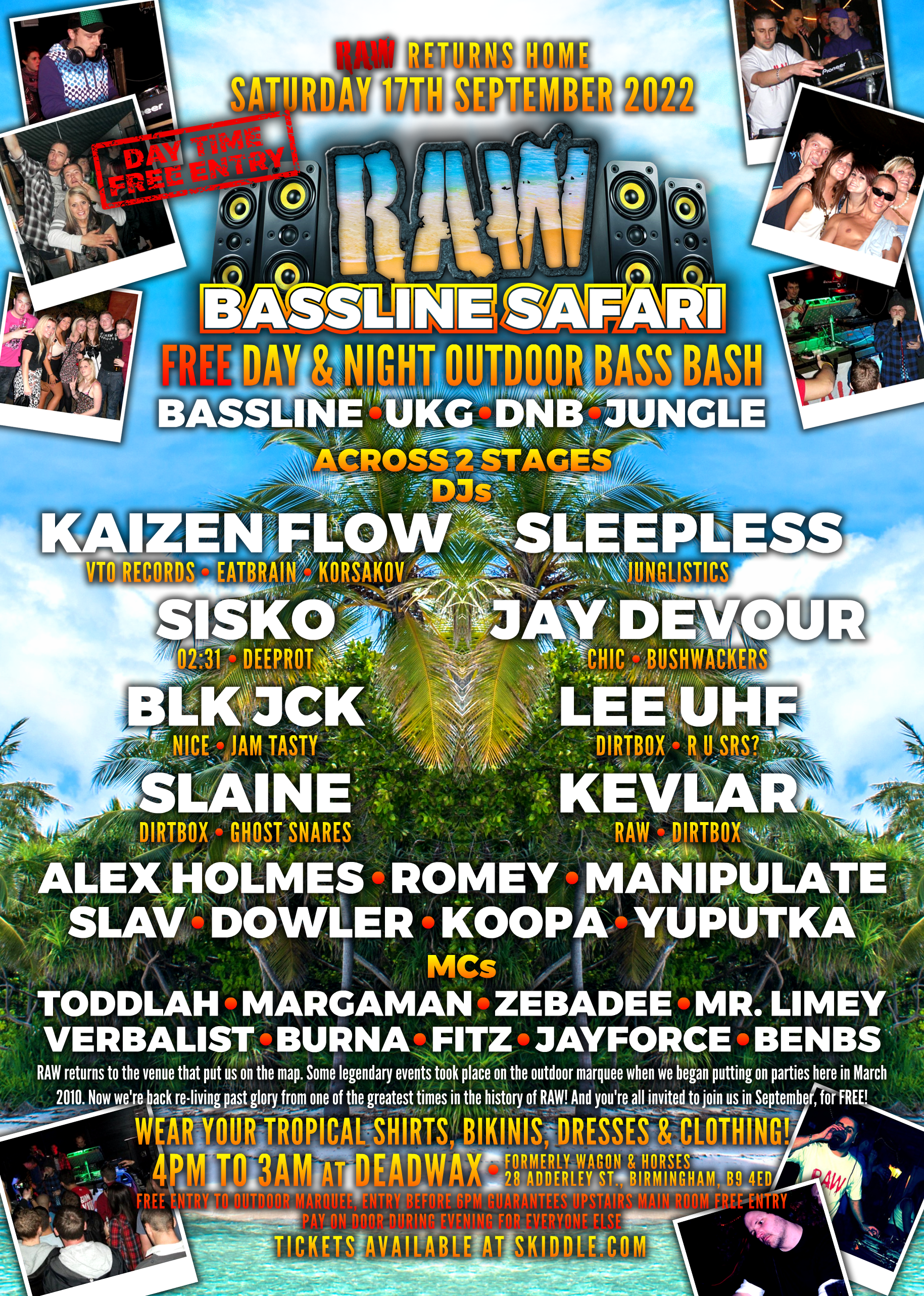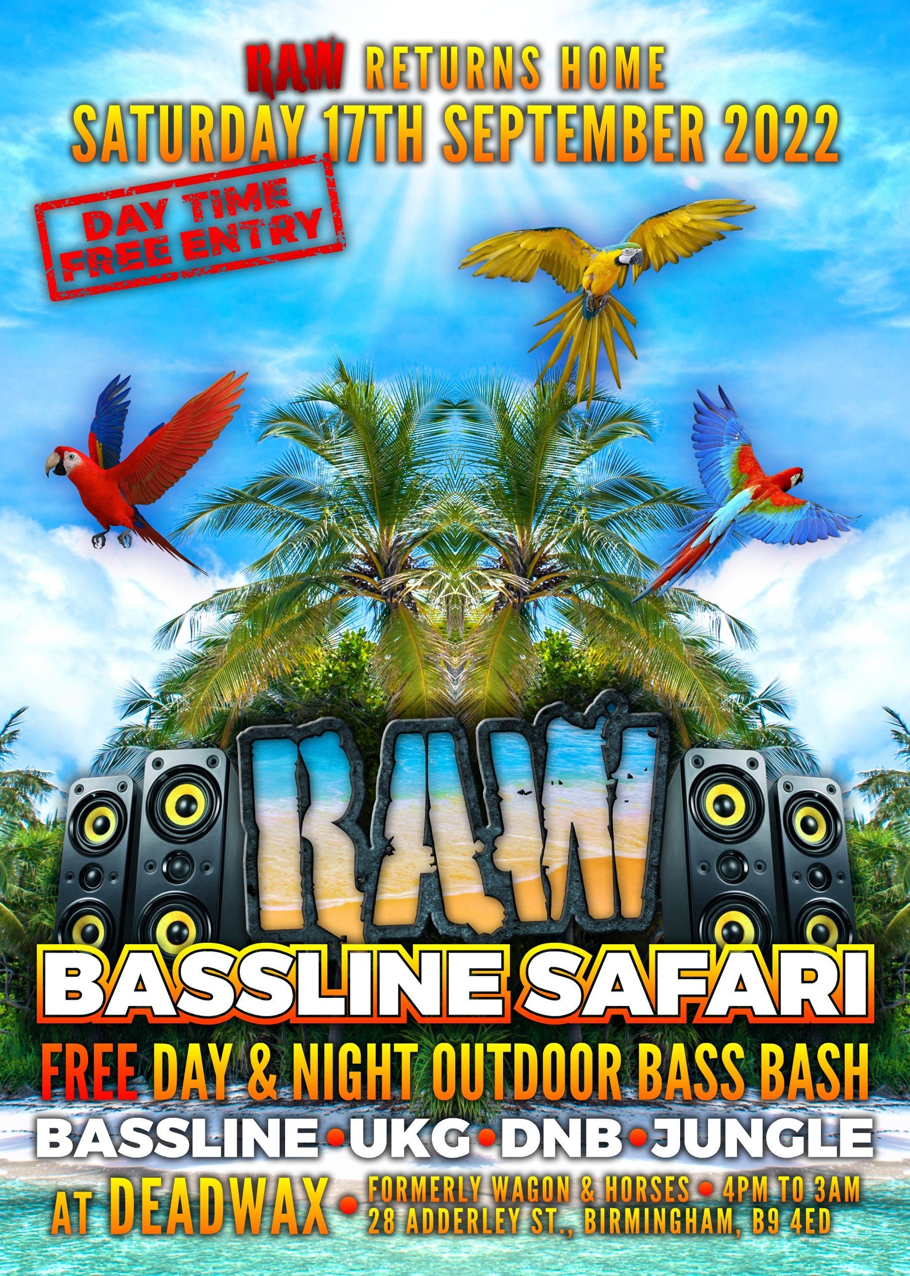 Raw is back in Birmingham at the venue that made it famous. Deadwax (Formerly Wagon & Horses) will be hosting Bassline Safari for a free party September 17th. Catch me playing 2 sets.